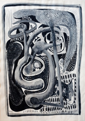 Pinselzeichnung und Wasserfarbe - 1976